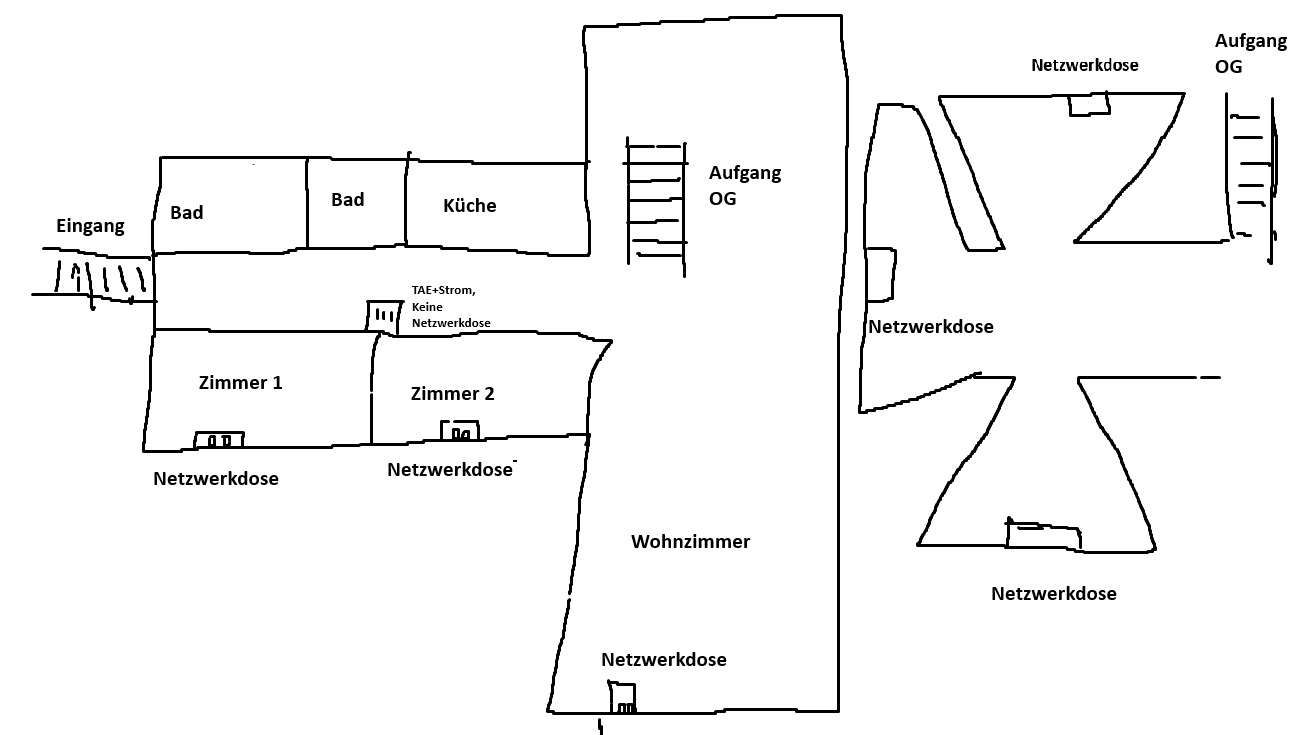 hier wäre der grundriss der wohnungVDC schrieb:Kommt aus ISDN Zeiten, hast du mal einen Grundriss und kannst darauf die Dosen einzeichnen, sehr wahrscheinlich wird da nur an 1-2 Ecken der Umbau mittels neuen Kabel auf normales Netzwerk möglich sein, weil viel parallel angeschlossen ist.