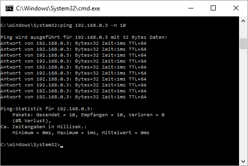 0,148ms, erheblich weniger als der zentrale PC, durch dessen Anschluss Kabel mit CAP5e