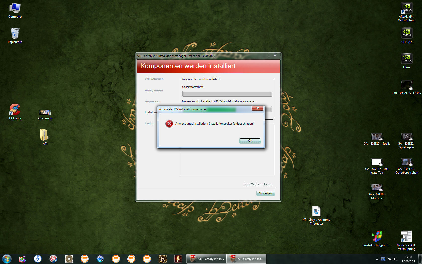 Guten Abend, habe Probleme beim installieren bei dem neuen Catalyst, es kommt immer die Meldung: Anwendungsinstallation: Installationspaket fehlgeschlagen!