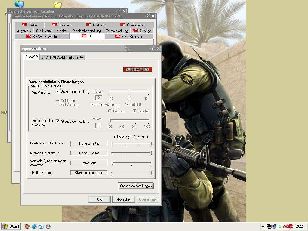 Die 1600x1200 wenn sie jemand kaum mehr schafft schauen normalerweise nicht so gut aus wie 1280x1024 mit AA und AF: