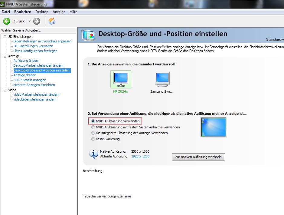 Wusstet ihr das in der Nvidia Systemsteuerung unter "Desktop Größe und -Position verwenden" die Einstellung "Nvidia Skalierung verwenden" aktiviert sein muss damit Downsampling überhaupt funktioniert?