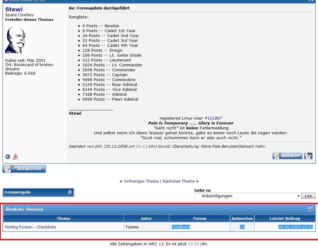 Was vielleicht auch nicht schlecht wäre ist, wenn man die Forumstruktur, die sowieso schon existiert, irgendwie auf den Marktplatz mappen könnte.