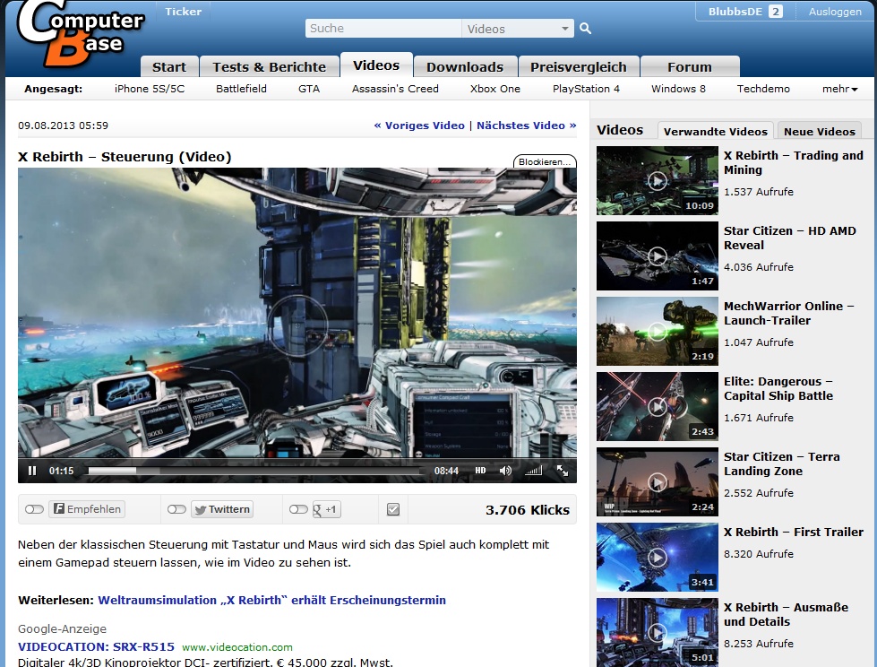 als ich eben in Cyberfox 24 die CB-Videos in HD von X Rebirth, beispielsweise dieses, sehen wollte, wurde das Video extrem unsauber: