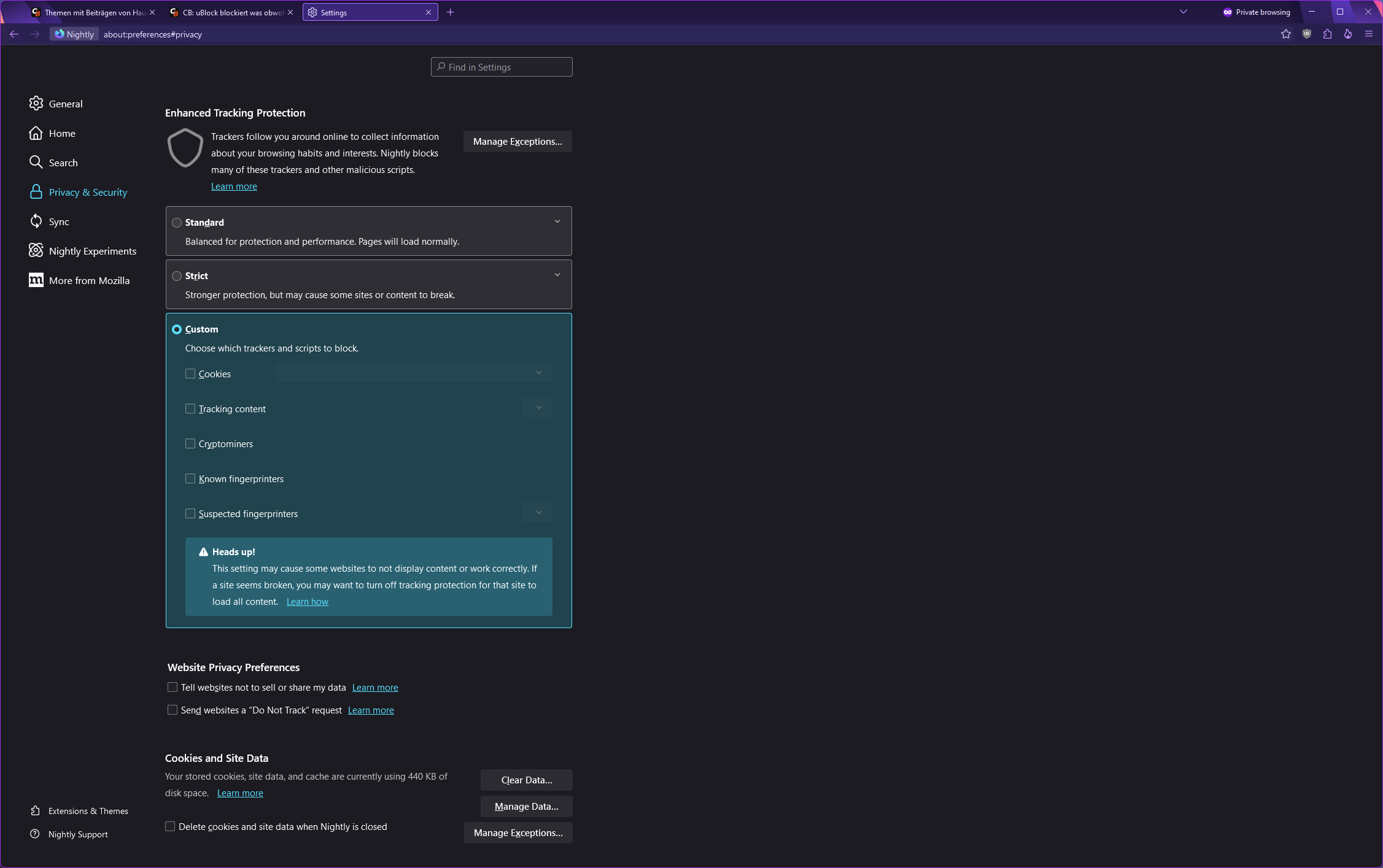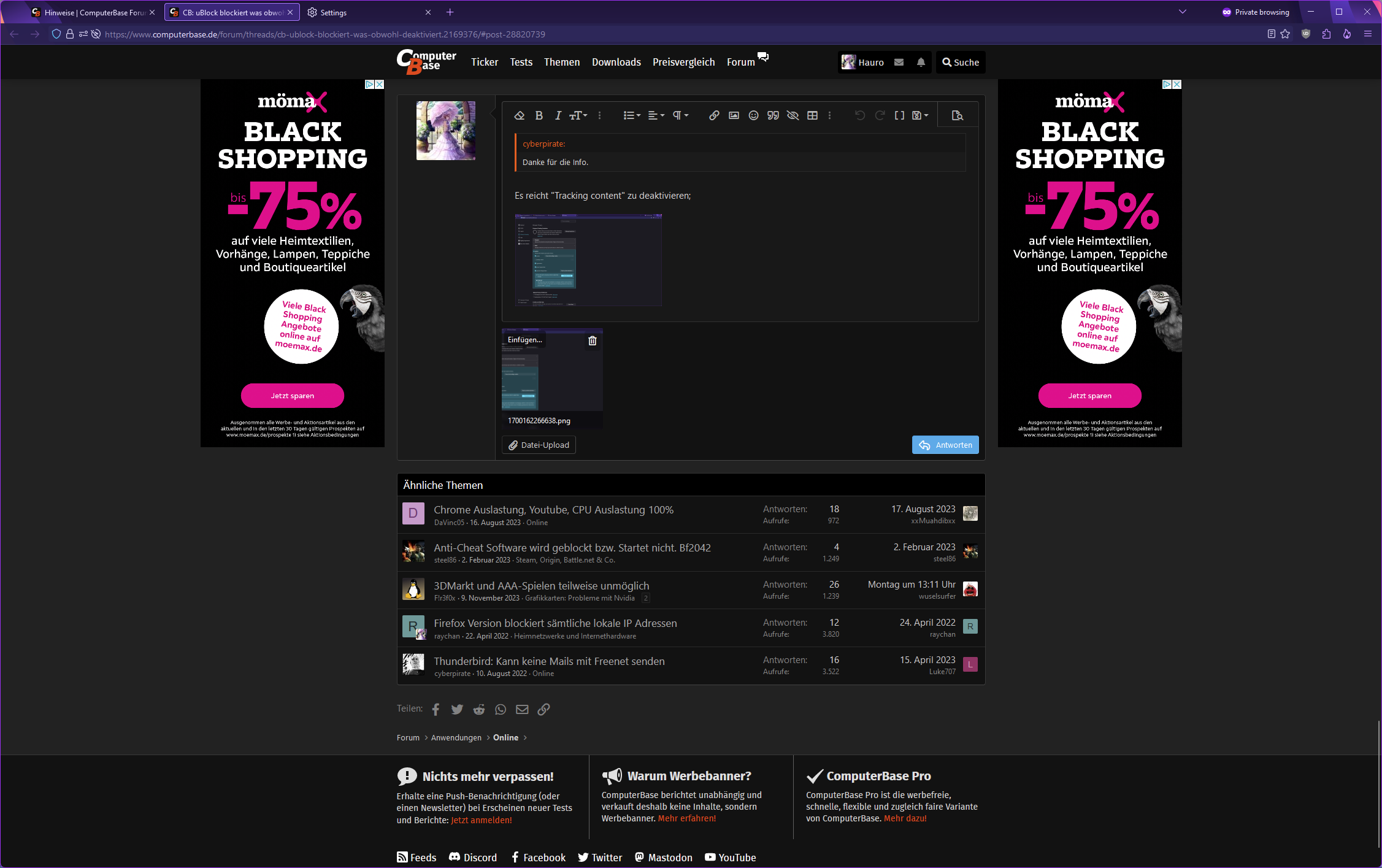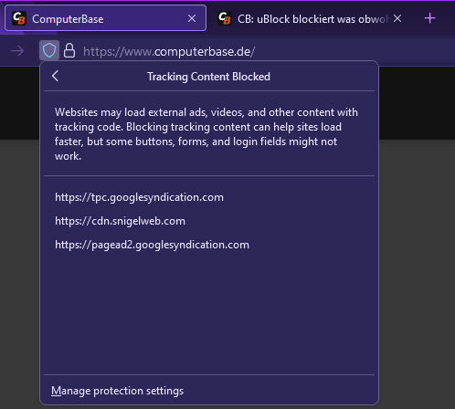 da Ich zur zeit das CB nicht abonnieren möchte und Ich daher den uBlock auf der CB Seite deaktiviert habe bekomme ich dennoch eine Warnung. Siehe Bild: