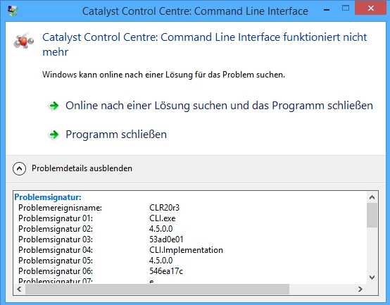Ich hab ein Problem mit meinem Catalyst Control Centre.Also ich hab eine Sapphire R9 290x Tri x Karte und die AMD Catalyst 15.4 Beta Treiber drauf und wenn ich in denn einstellungen von denn Catalyst Treiber gehen will kommt dann die Meldung "Catalyst Control Centre Comand Line Interface funktioniert nicht mehr".Jetzt kann ich nicht mehr in die Catalyst einstellungen gehen.Hab Windows 8.1 64 Bit