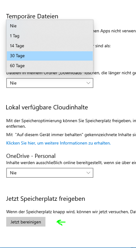 Dort wird mir unter "Temporäre Dateien" angezeigt, dass 10,2 MB bereinigt werden können.