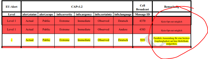 Es kamen zwei Cell Broadcast Meldungen, jeweils begleitet von einem sehr lauten Hinweiston.