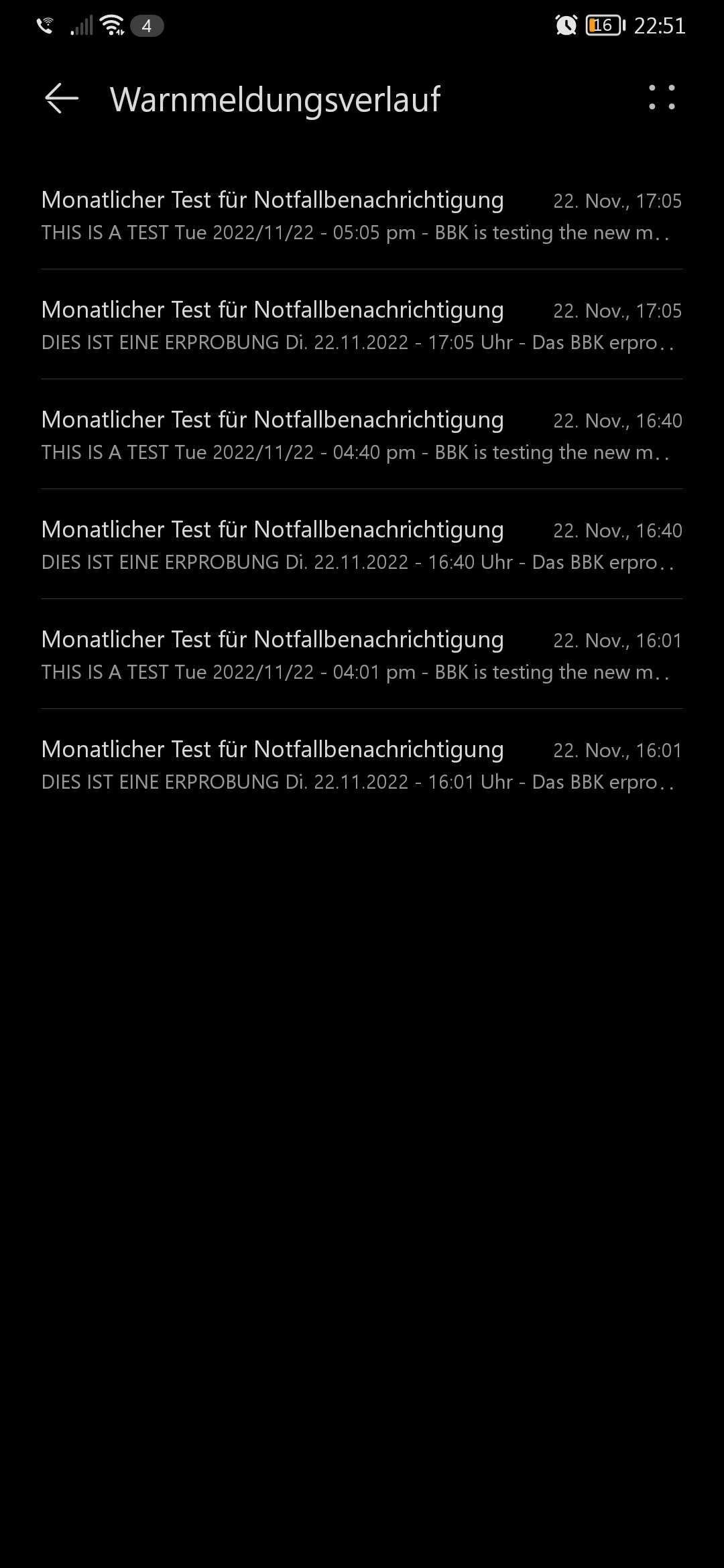 In der Zukunft werden Warnungen der höchsten Stufe immer parallel sowohl mit den nur in Deutschland gültigen IDs, als auch mit der international seit Jahrzehnten bekannten ID versendet. Wie man sehen kann, lassen sich die Warnungen der höchsten Stufe auch nicht unterdrücken, weshalb jetzt alle darüber informiert werden.
