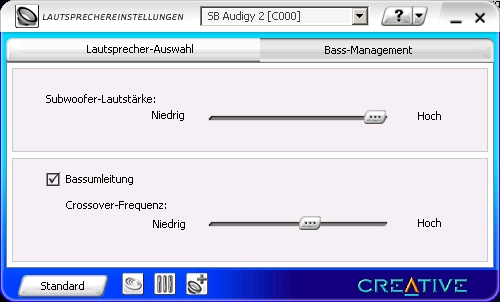 Wenn du das CEM nicht direkt an die Soundkarte anschliest sondern an deinen neuen AV Receiver (Anschlussart B oder C welche beide bei deinem Receiver möglich sind auf Seite 5 im Handbuch des CEM) , so wird von der Soundkarte im normalen Windows Betrieb nur Stereosound an den Receiver geschickt werden. Dies erklärt auch warum du nur die beiden Frontkanäle regeln kannst an der Soundkarte.