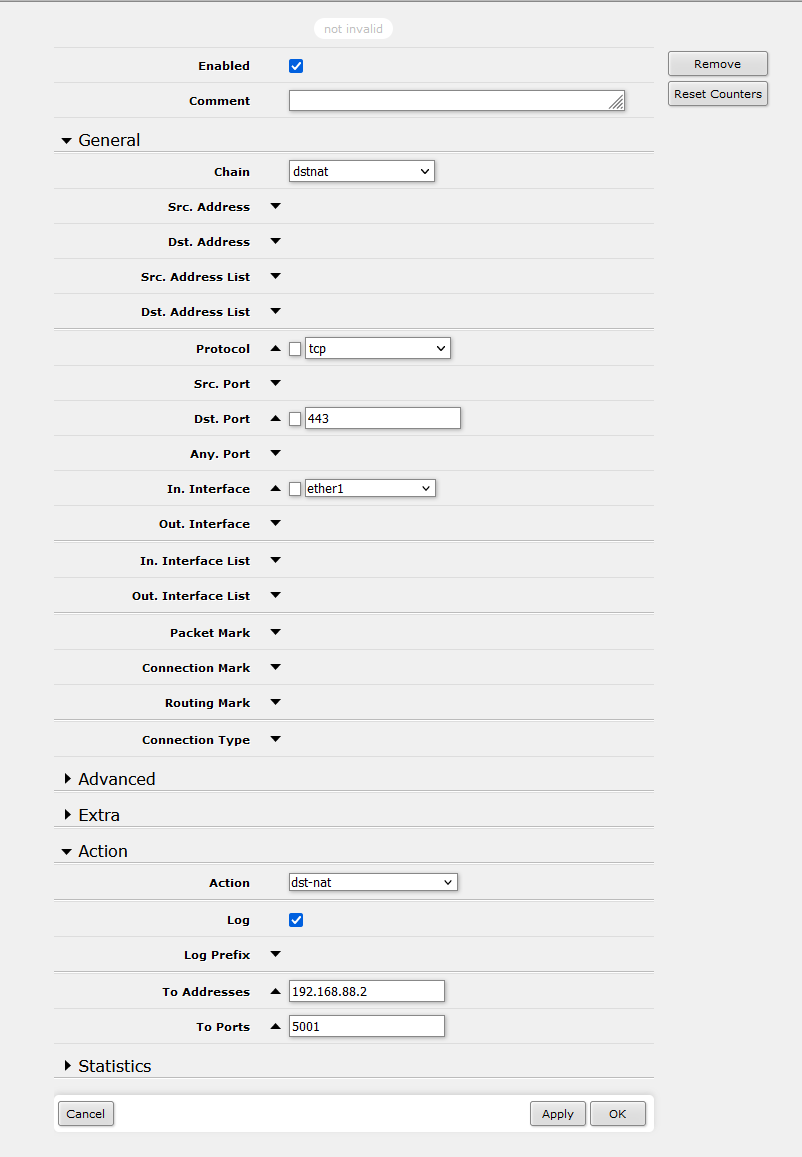 Also einen MikroTik hAP Mini besorgt und einen Cloud Hosted Routers von Mikrotik auf dem Cloud Server installiert. Hier habe ich einen OpenVPN Tunnel in Verbindung mit einem EoIP Tunnel aufgebaut und kriege die NAS sogar vom CHR bei Hetzner erreicht, allerdings kann ich die NAS aus dem Internet über die feste IP des Servers wieder nicht erreichen, obwohl ich NAT eingerichtet habe und verschiedene Kombinationen aus Firewall Regeln probiert habe.