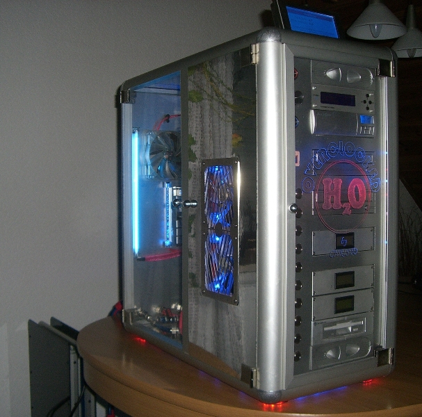 - Gehäuse: Eigenbau mit Bosch-Alu-Profilen, Acrylglas und Spiegelfolie