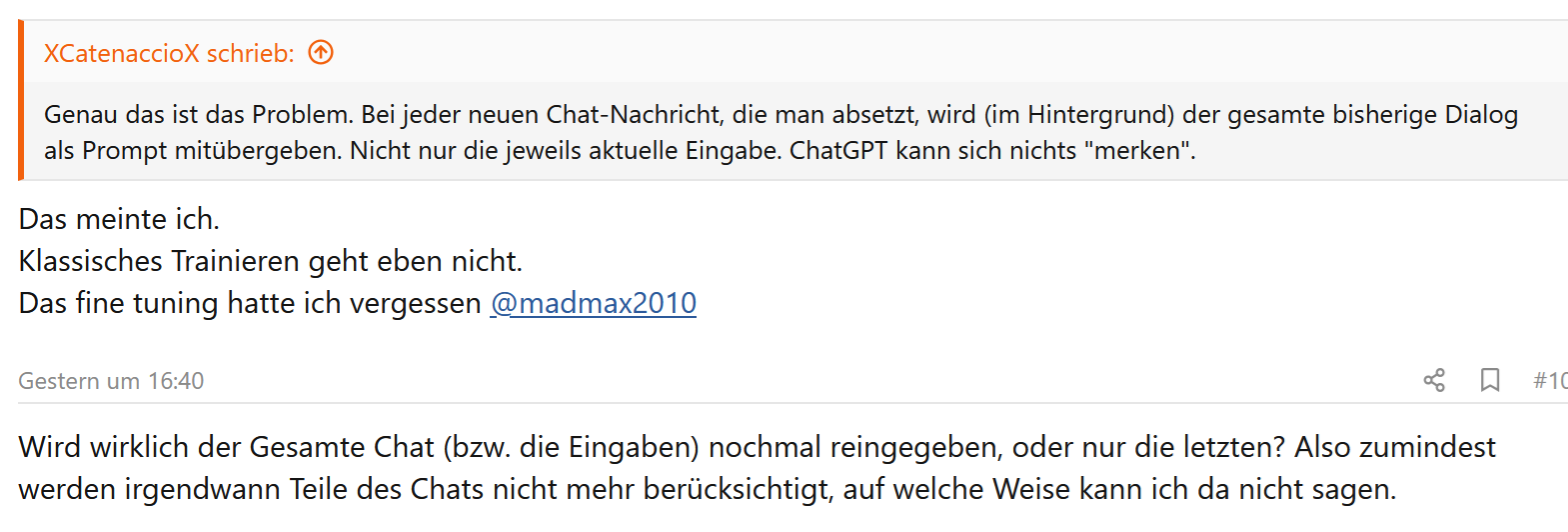 Krass okay. So hart werde ich gehassttollertyp schrieb:Selbst ChatGPT hat ein besseres Verständnis von Kontext...
