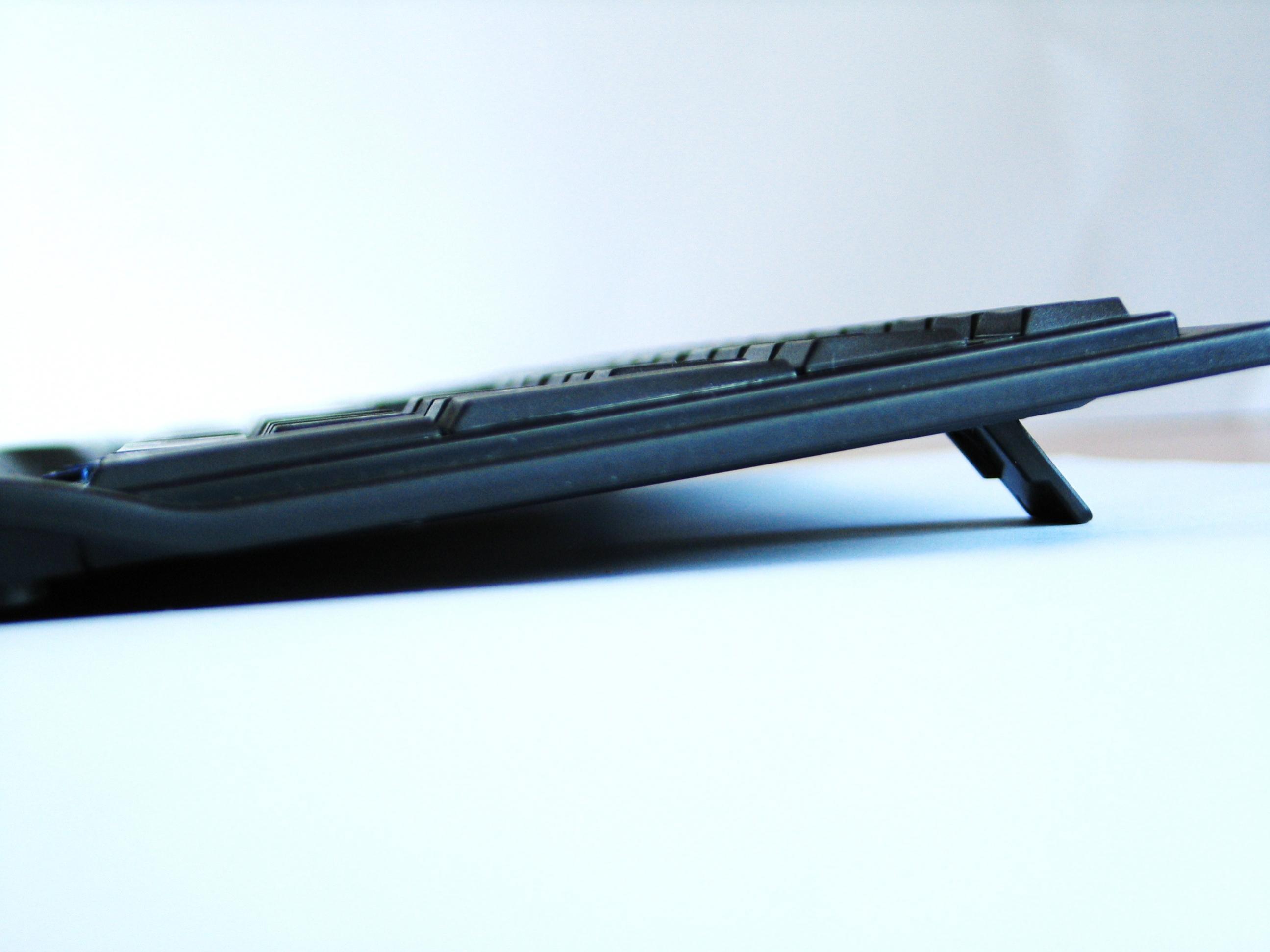 Zusätzlich kann man die Plastikbeine noch aufstellen, um die Tastatur um ungefähr 4° anzuwinkeln.