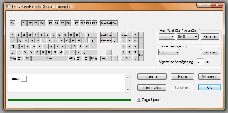 - Mittels Software Makro programmiert: 2000 Zeichen je Funktionstaste auf der ersten Ebene