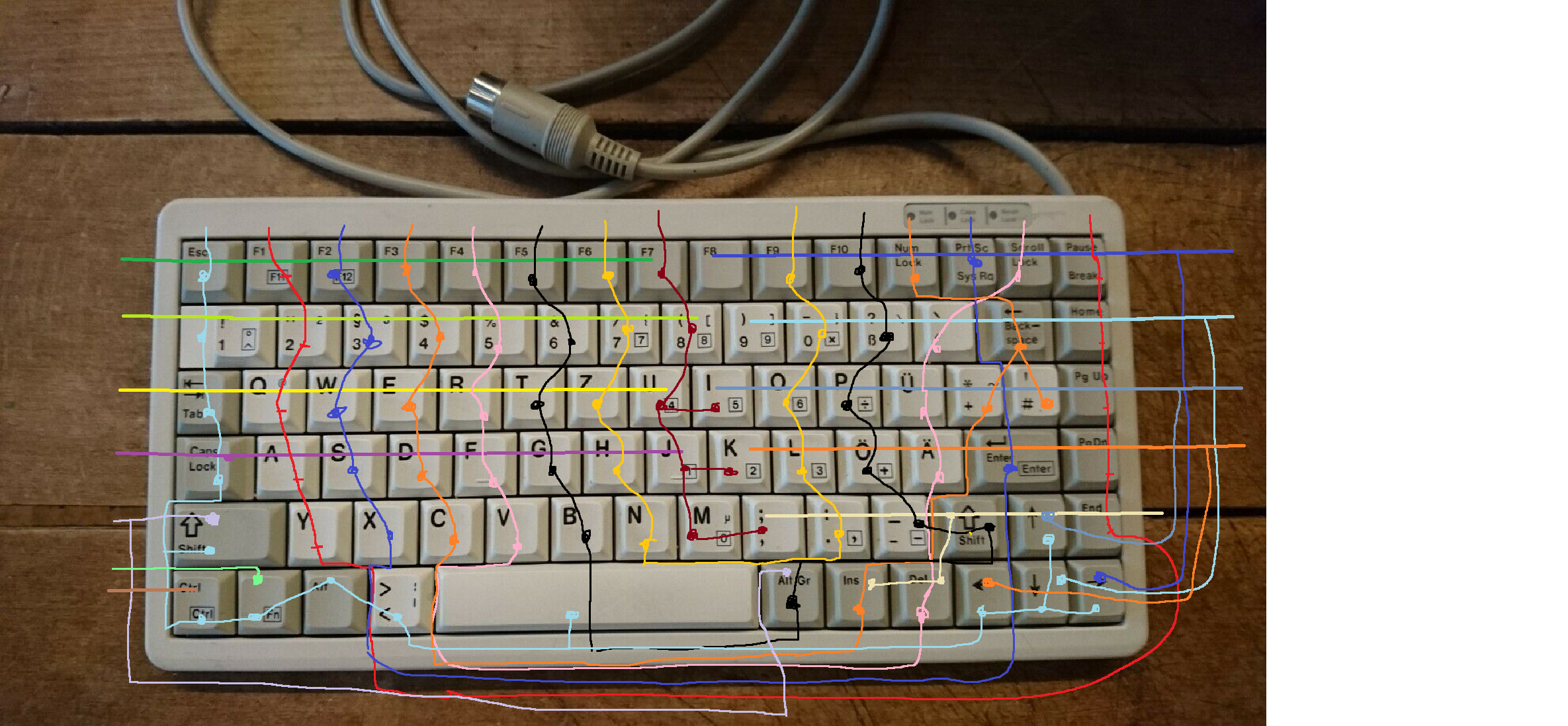 Nun sitze ich da mit meinem Multimeter mit Durchgangtest und verstehe nicht wie das Keyboard funktionieren soll
