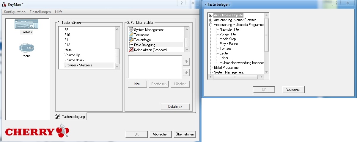 Man kann sowohl die 4 Mediatasten, als auch die F-Tasten komplett frei belegen.