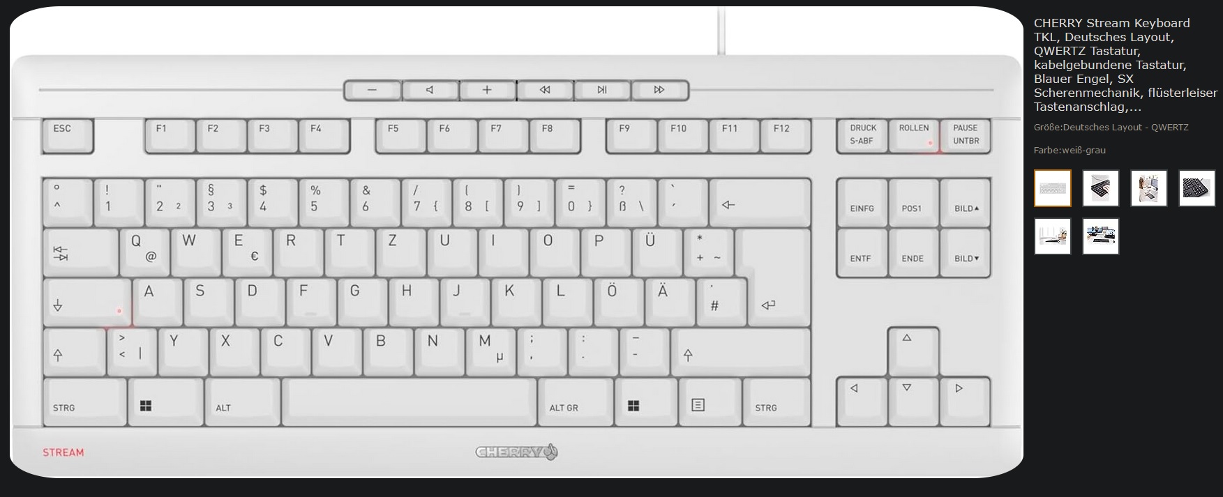 Bei der Gelegenheit auch noch ein Satz zum Layout, weil das nochmal aufkam: Bei STREAM-Produkten gibt es keine Experimente mit der Tastenanordnung. Das ist ganz stur der DIN-Standard. Dementsprechend ist TKL einfach nur eine Fullsize ohne Nummernblock. Für noch kleinere oder experimentellere Formen, gibt es andere Produktlinien.