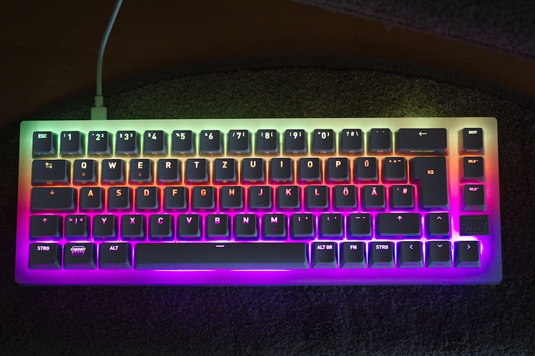 Die K5V2 ist eine 65% Tastatur bei der unteranderem der Nummern Block und die F-Tasten fehlen.