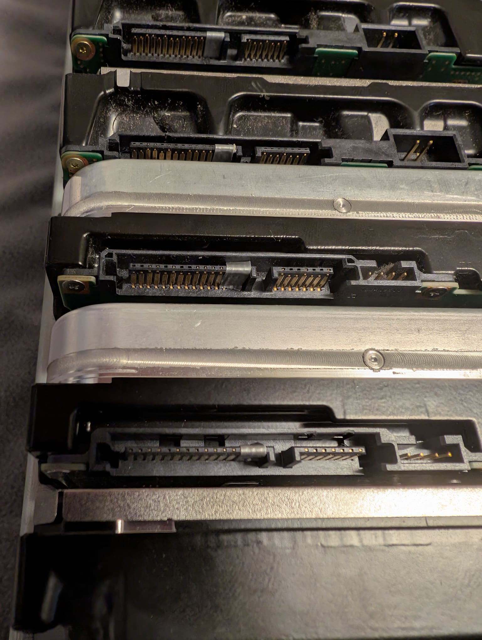Ich habe ein externes Kabel SATA/Stromkabel mit USB Anschluss - hierüber werden ALLE HDD einwandfrei erkannt. Allerdings nur wenn ich diese einzeln über das SATA USB Kabel anschließe. Dort haben sie auch Ihren Name und die entsprechende NTFS Formatierung. Da die Platten teils aus externen Festplatten stammen habe ich die Pin3 abgeklebt. Im Sleepmode können sie also auch nicht sein.