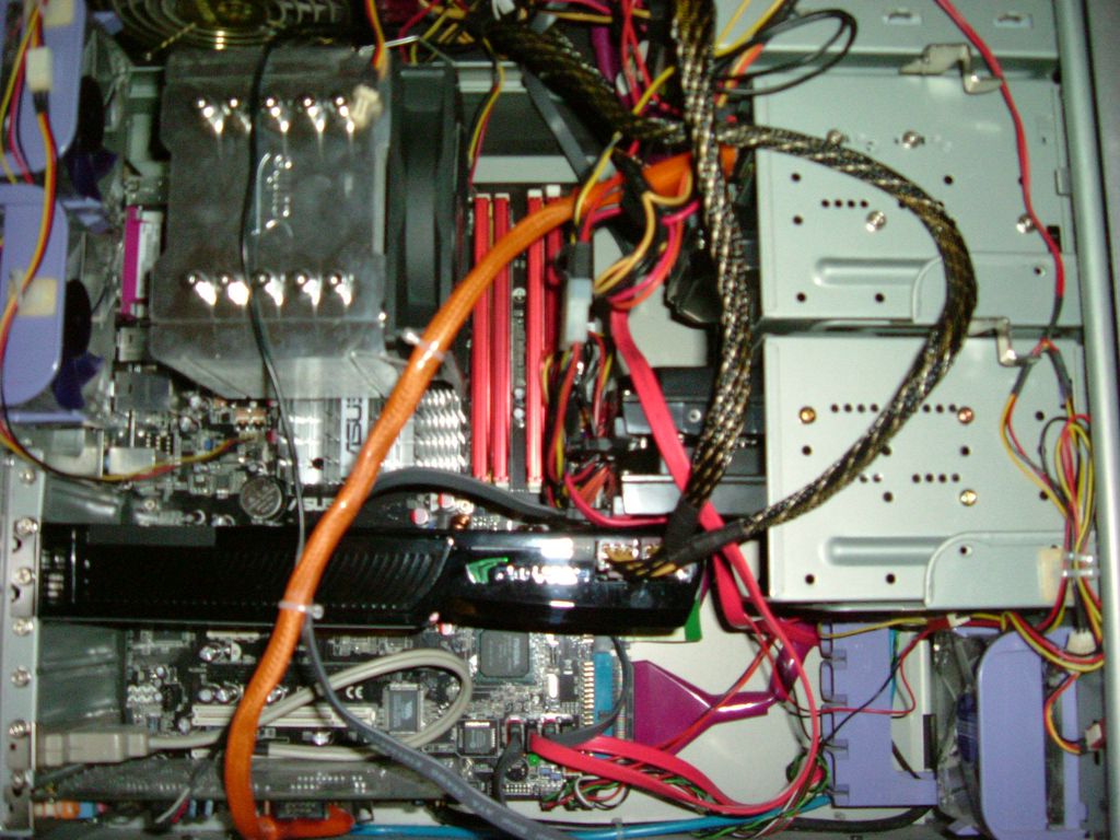 Hab das Gigaybte P35 DS3 Rev. 2.0 und habe keine Festplattenkäfige drin.Hab bedenken das die Karte dann an der Metalplattform ( wo die Festplattenkäfige sitzen ) anstösst.Aber dadurch das die Stromanschlüsse an der Seite sind wird es gehn richtig?
