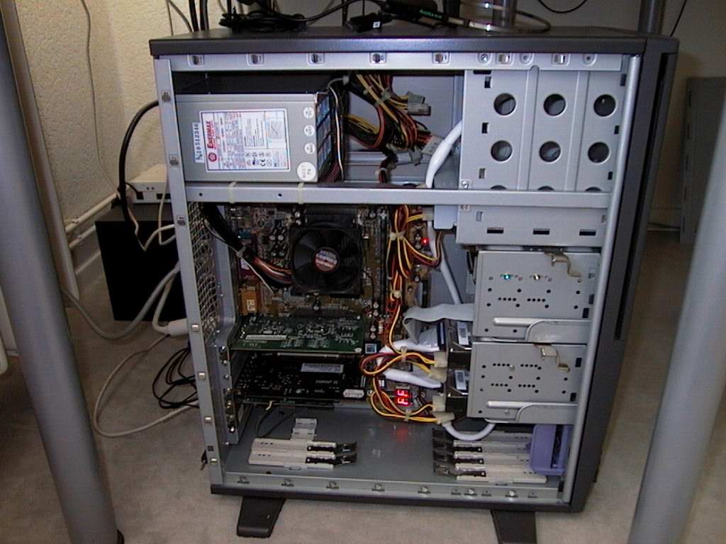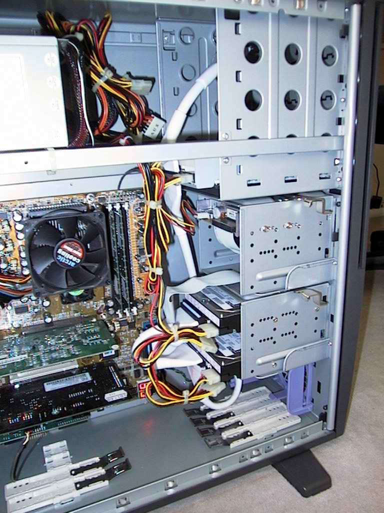 Jetzt 3 Hdd, aber letztens noch 4 eingb. gehabt und halt DVD u. CD-R; Floppy nach oben in 5 1/4 schacht.