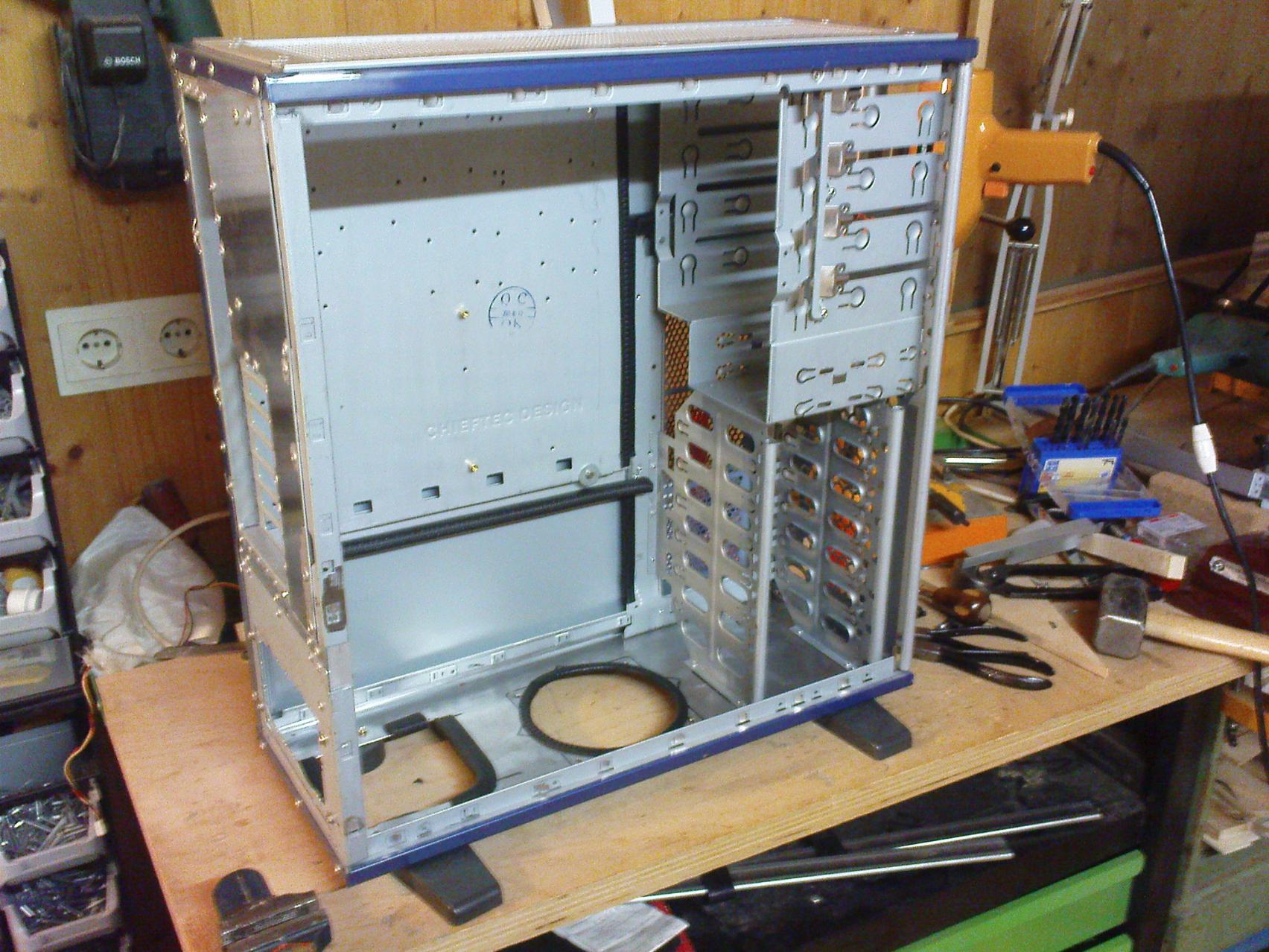 ich habe mein Chieftec LCX-01BL-BL-B-OP Mesh-Midi - blau/schwarz auf Silent umgerüstet - bin aber noch nicht ganz fertig; wollte aber zunächst schon mal einige Bilder hochladen und eure Meinung dazu erfragen. Ich habe das Case günstig bei ebay erstanden und musste es sowieso zerlegen, weil das Gesamte Case total verzogen und gestaucht war. Da kam mir die Idee warum nicht gleich auf Silent umbauen. Nun soweit so gut und soweit bin ich bis jetzt: