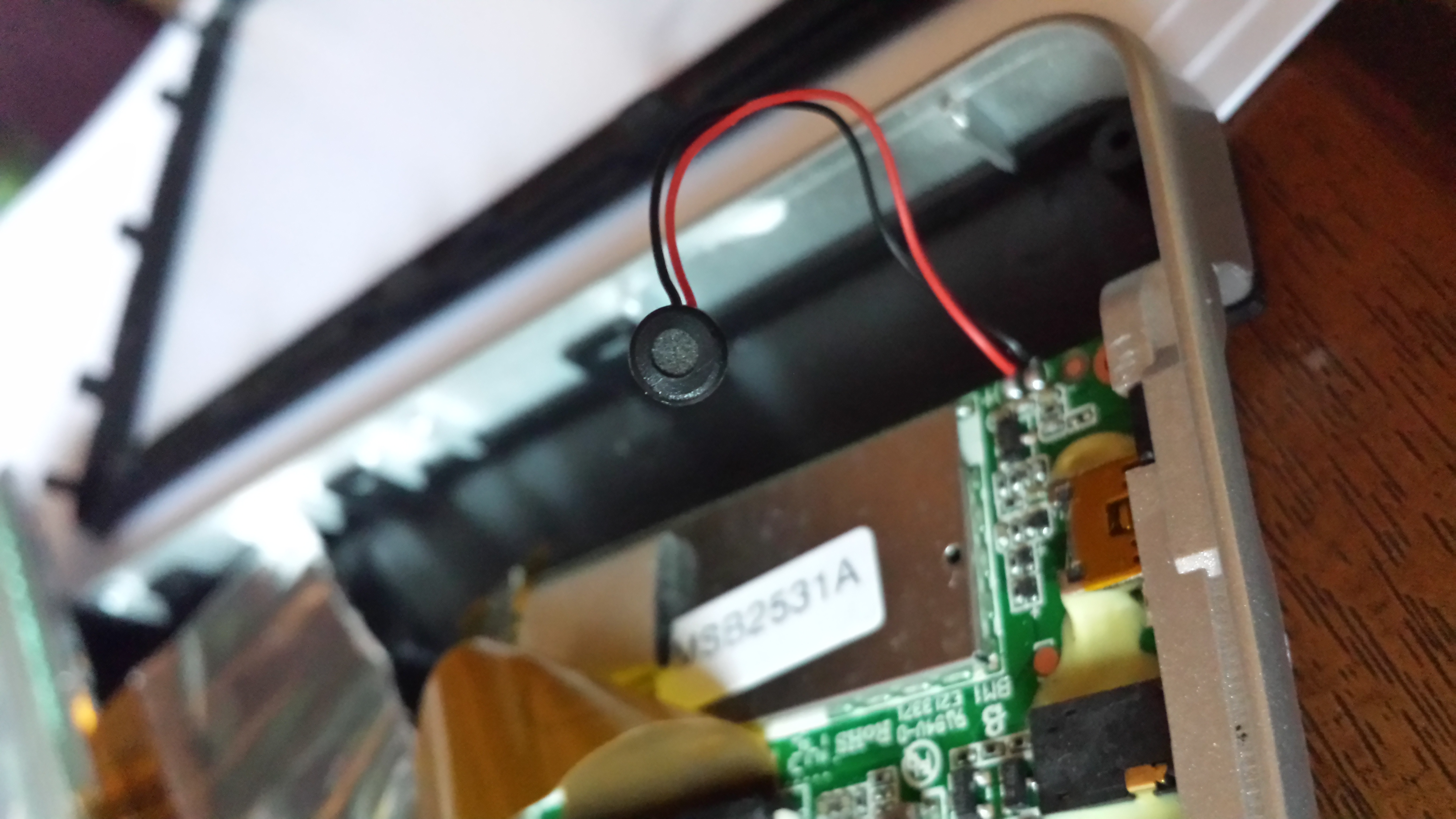 1. Doch um was für einen Anschluss bzw. Interface handelt es sich hier? (Wie auf dem Bild erkennbar, ist vorne etwas Knopfartiges und von diesem geht ein schwarzes und ein rotes Kabel zur Platine)