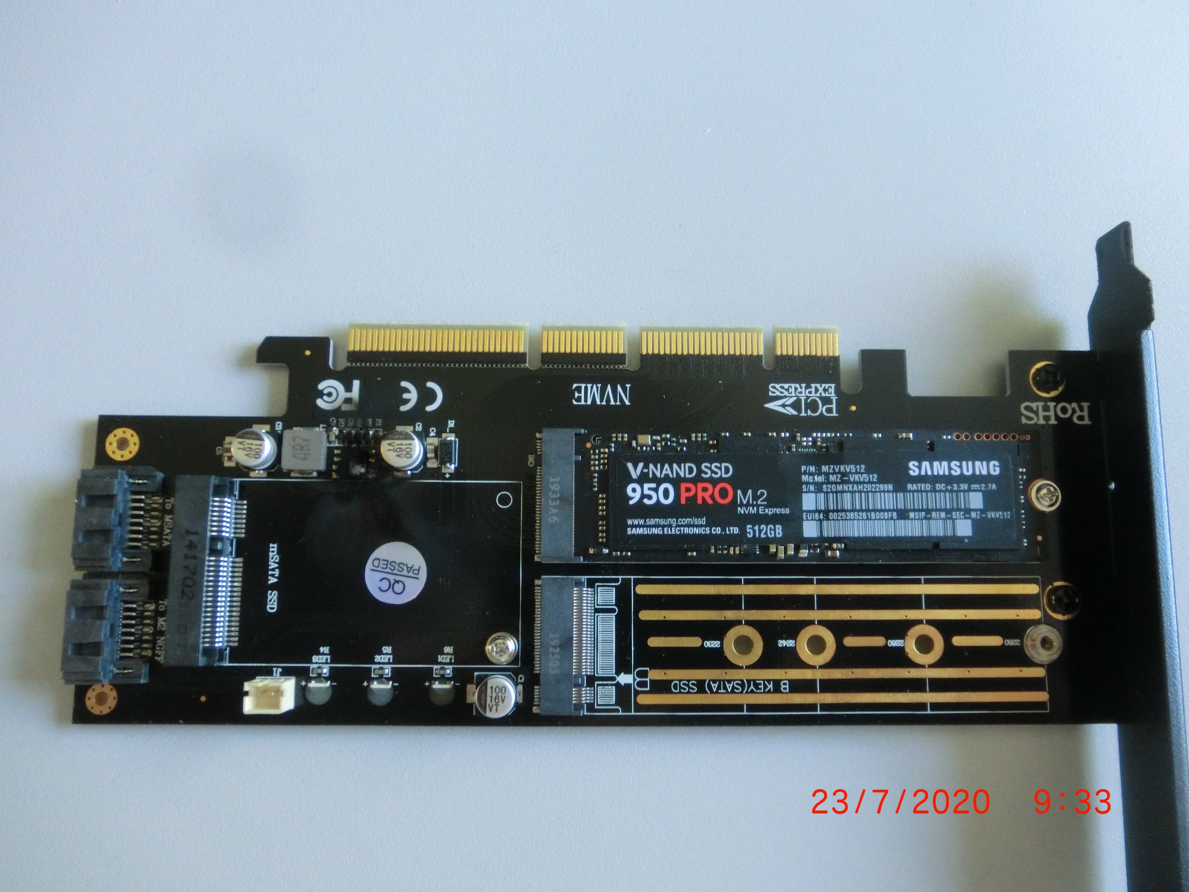 nachdem ich zwecks Beschleunigung den Desktop mit bestehendem ASUS M5A78L-M/USB3 und der FX-APU weiter mit einer SSD aufgerüstet habe mit einer NVME Samsung950Pro (Bootlaufwerk für Win10) auf einer Adapterkarte in Slot1 ist jetzt beim Herunterfahren nach kurzem Betrieb ein Chip auf der Karte explodiert. Brandgeruch nach dem Geräusch zwang mich zu Notaus und Stromkappung. Das Gerät ist innen sauber - kein Staub oder so. Büro-Betrieb ohne Belastung. Ohne SSD und Adapterkarte läuft der Desktopn (wesenlich langsamer) wieder über die 1TB HDD (ehem. Boot Win10) ohne Probleme. Die HDD war alternativ mit eigenem Win10 auch bei SSD-Betrieb drin (das BS quasi deaktiv).