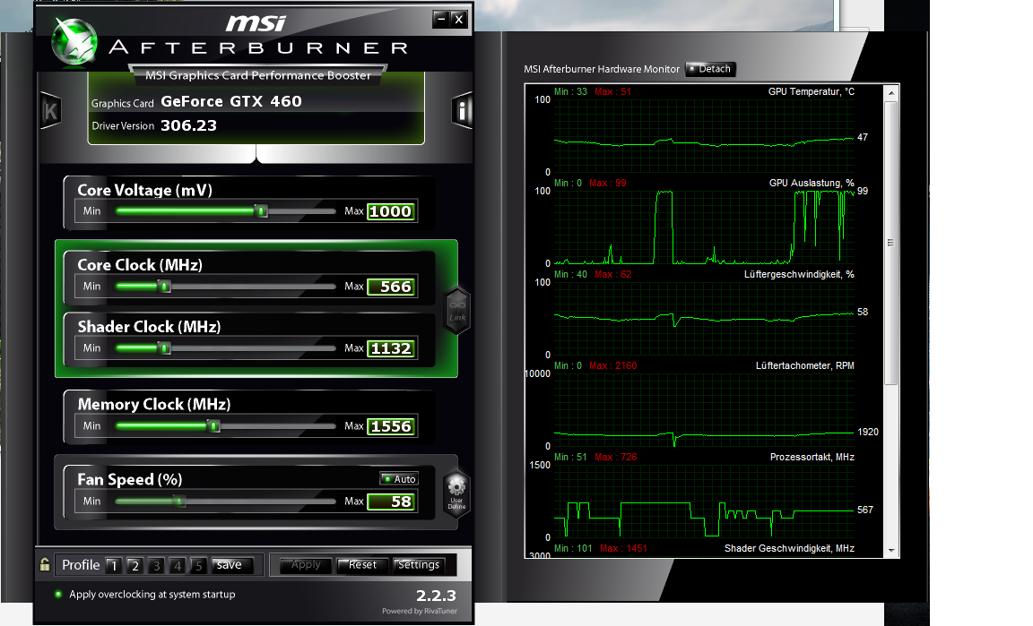 wie der Titel schon sagt habe ich das Problem mit einer GTX 460 Cyclone von MSI, dass ich bei GPU Auslastung immer Schwierigkeiten habe.