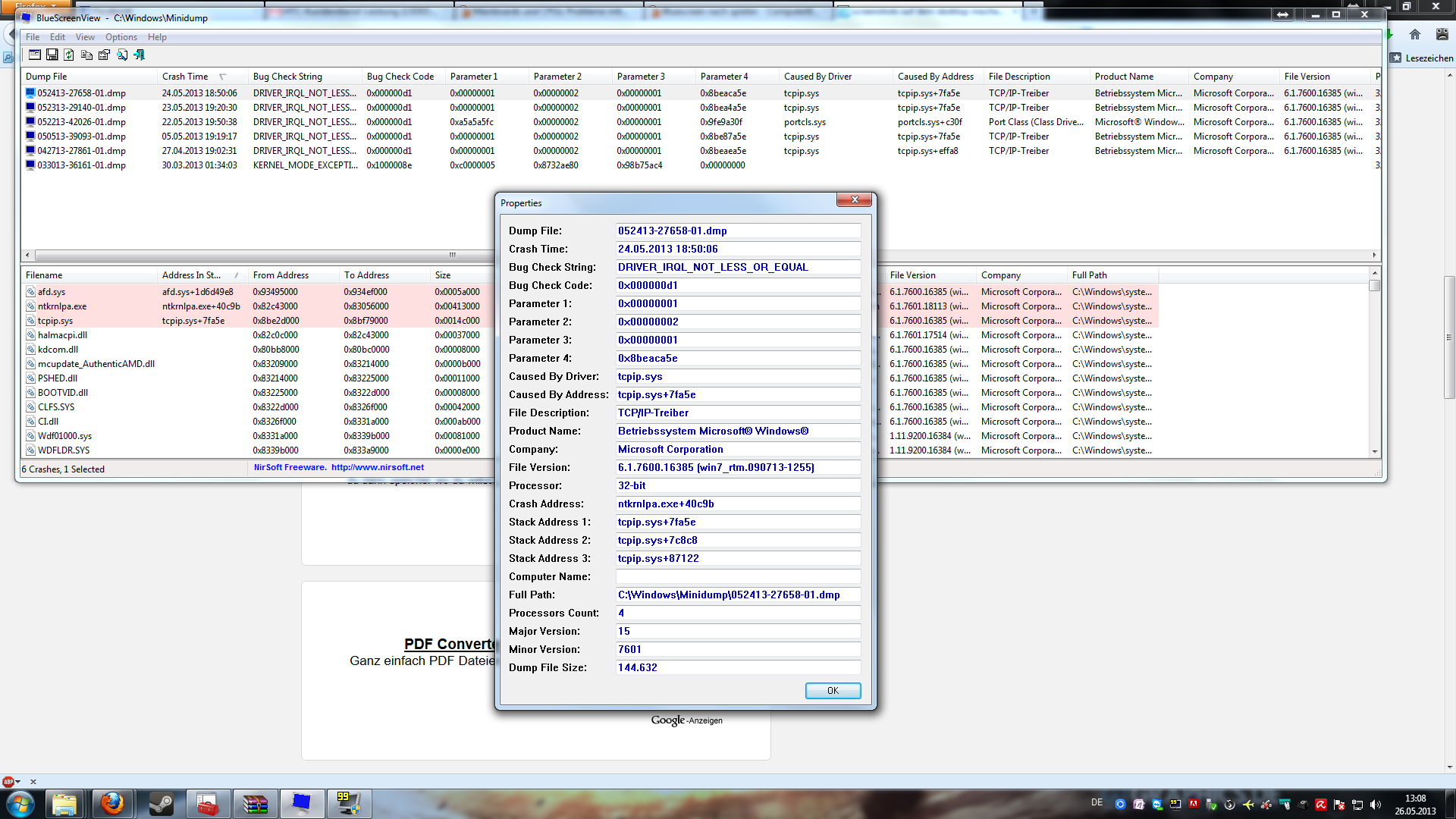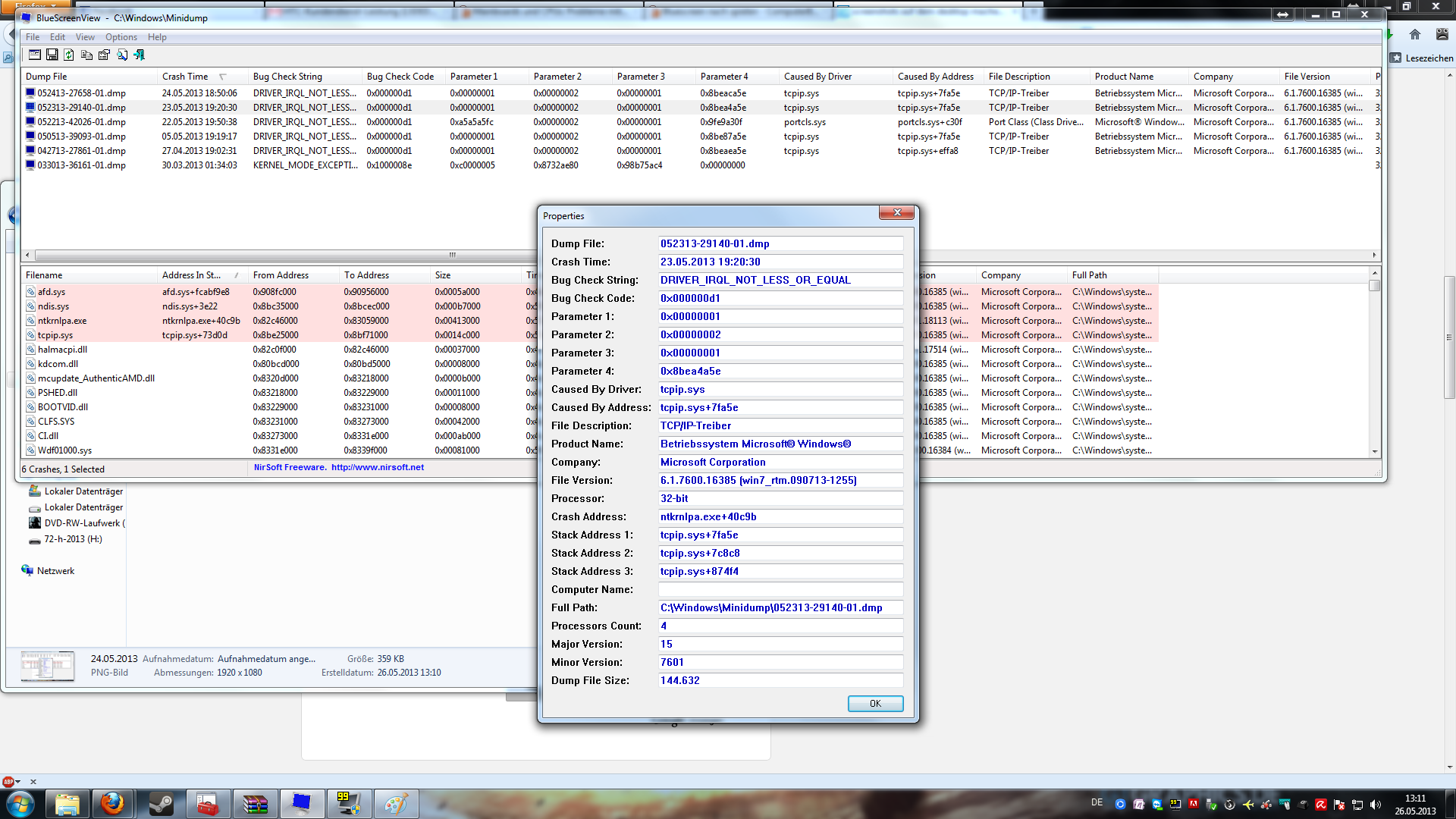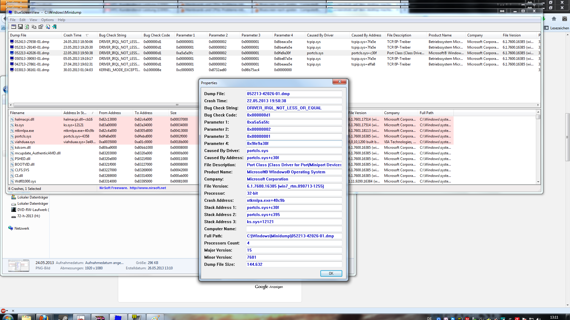 Hier sind noch die screenshots von den letzten Bluescreens...