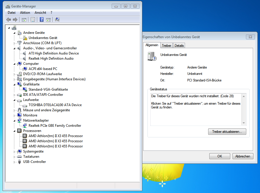 Nach den hier genannten Problemen habe ich mir schlussendlich eine neue Festplatte gekauft und Win 7 drauf installiert. Anschließend sind mir aber folgene Probleme aufgefallen: