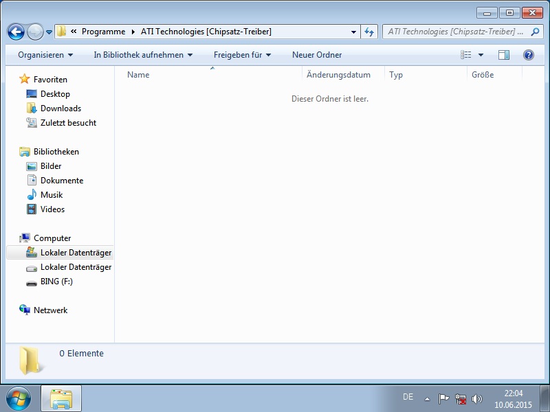 - Chipsatz Treiber und Graka Treiber (beide von AMD/ATI) hat es formal installiert, der Installitionsort ist aber leer: