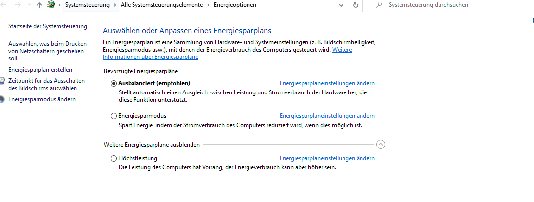 1. Windows Energiesparplan auf "Ausbalanciert": Bild