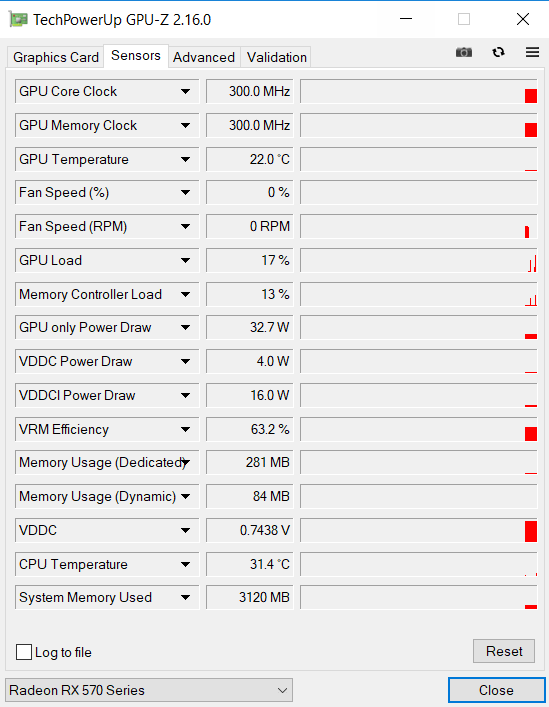 ich bin auf der Suche nach dem Grund dafür, dass bei meiner neu installierten Grafikkarte (siehe Sig.) der Wattverbrauch (laut HWinfo) im Idle konstant bei ca. Watt steht. Der Takt geht auch nicht unter 300 mHz.
