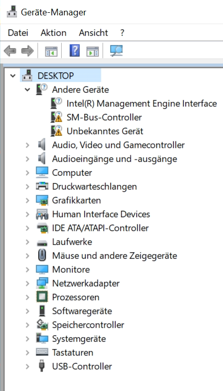 Im Gerätemanager werden folgende Gerätetreiber vermisst:
