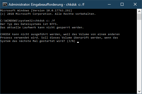 Für die lokale C:-HDD habe ich im CMD-Fenster als Administrator chkdsk /f eingegeben: Das Ergebnis blieb nicht stehen. :confused_alt: