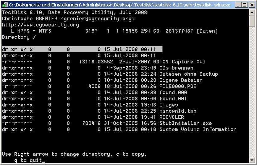 gelöscht, gespeichert, Ordner erstellt usw. und die Partition auch das eine
