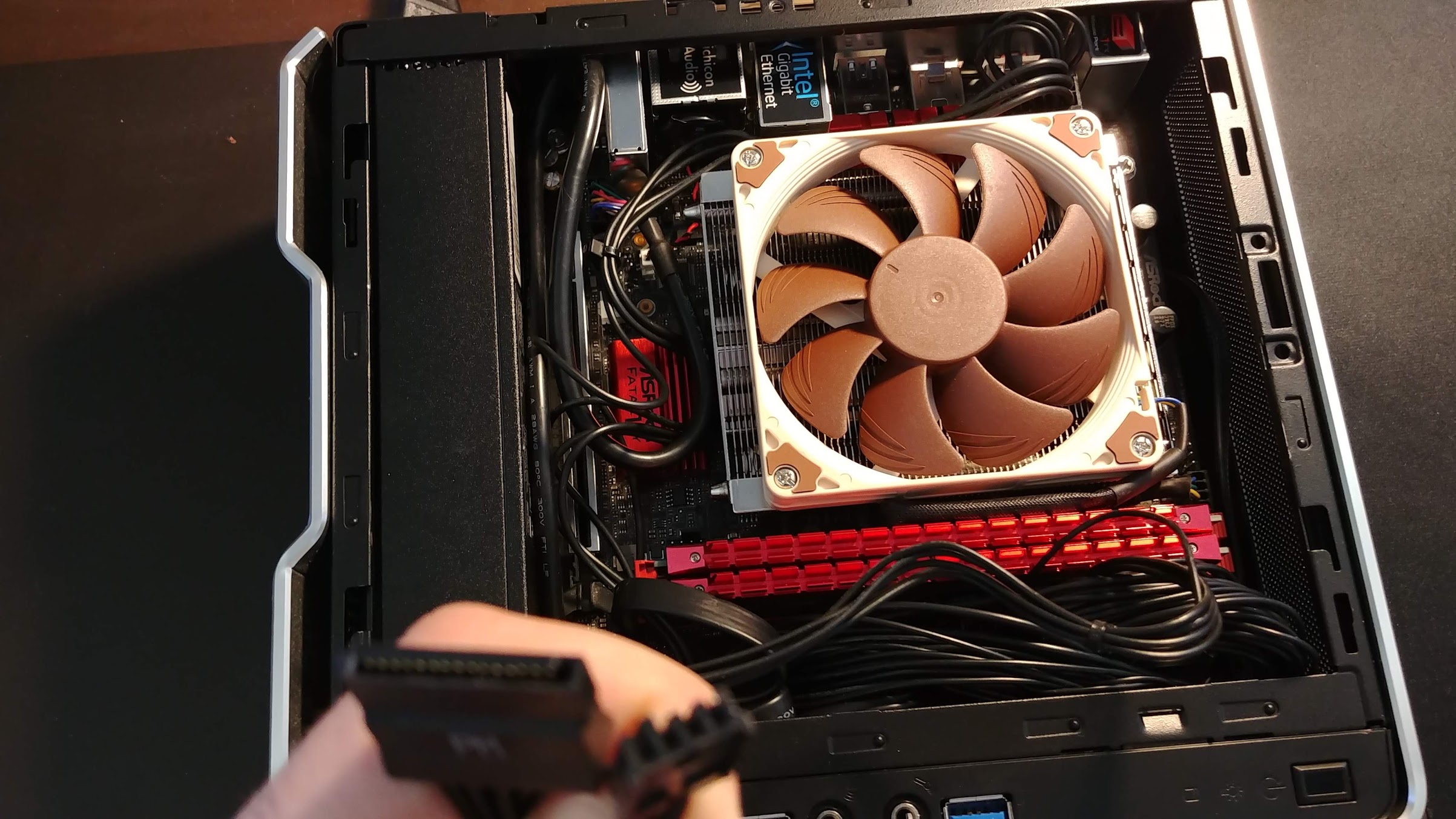 Es sieht für mich nach einem SATA-Anschluss aus, aber eigentlich hat das Gehäuse nur 2xUSB.