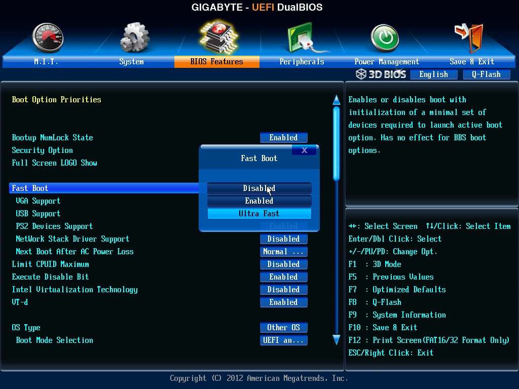 Sollte es auch sonstige Probleme mit dem FAST BOOT (also FAST = enabled) geben, einfach deaktivieren.