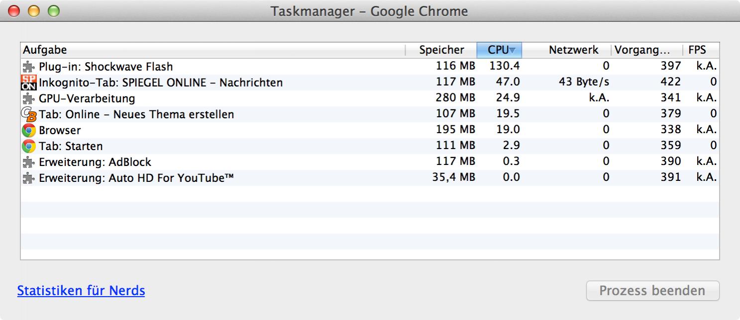 Chrome Mac: hohe CPU Auslastung bei Flash