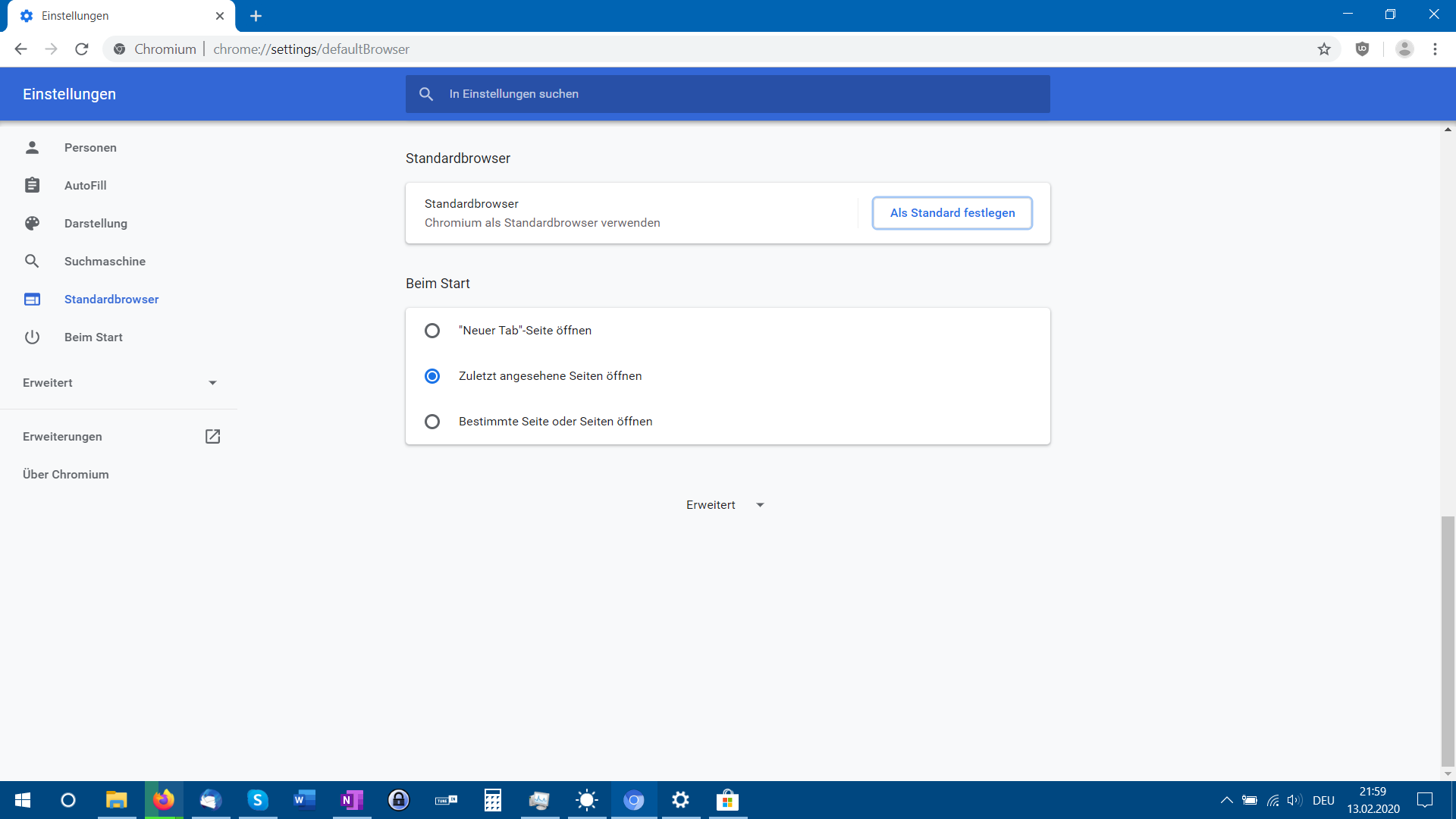 Der Chromium hat schon diese Einstellung, genauso wie Chrome. Aber Windows schlägt mir diesen Browser nicht zur Auswahl vor.