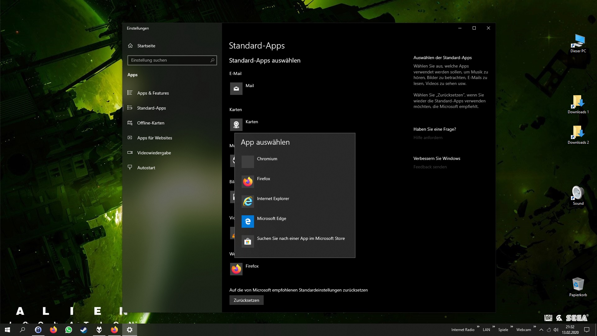 Ich hab grad mal in den Standard-Apps geschaut. Obschon ich Chromium nicht mehr auf der Platte hab, ist noch der Eintrag da