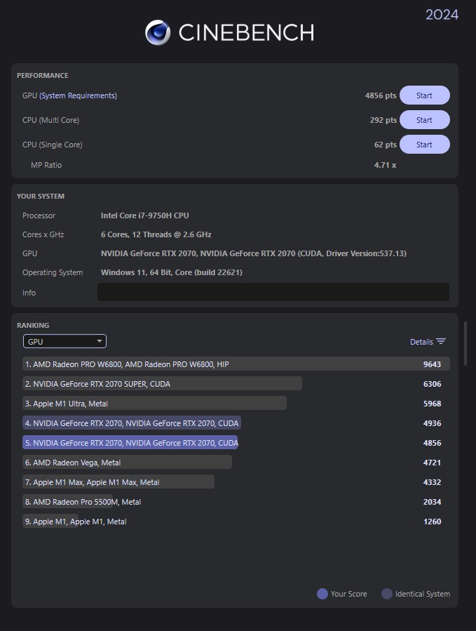 Komme mit meiner AMD RX 6700 XT auf senationelle 524 Points im GPU Test.