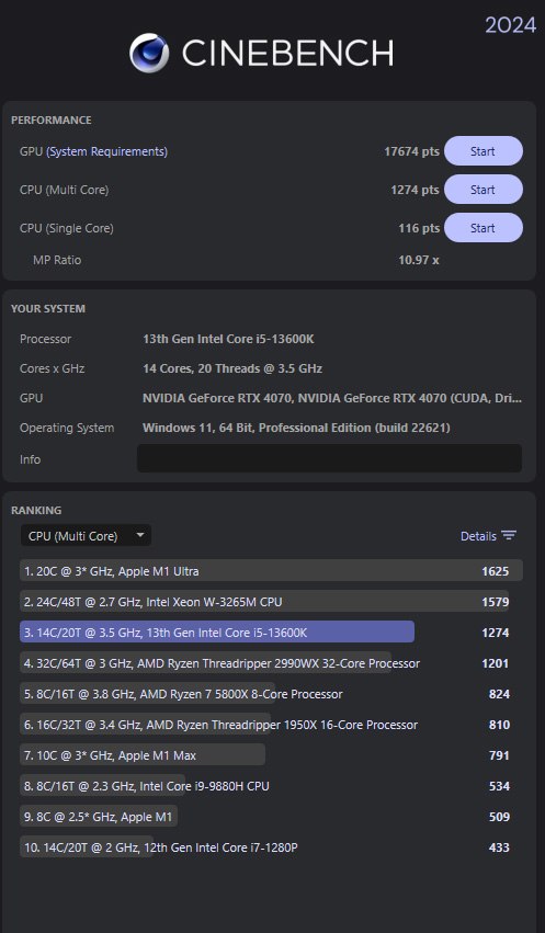 Das ist mir bei SIngle-Core auch aufgefallen. Der Benchmark wird aber dabei weiter aktualisiert.Ranayna schrieb:Groesstes Problem: Der Benchmark scheint immer mindestens ein vollstaendiges Bild zu bauen, egal wielange das dann wirklich dauert. In den 10 Minuten Benchmarkzeit hat er grade mal zwei der Quadrate fertigbekommen und stand dann eine Ewigkeit auf "finish Rendering"...