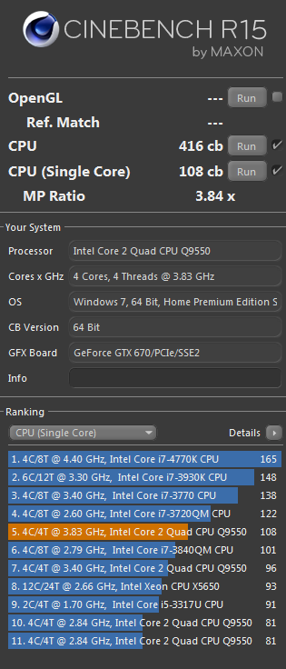 Ne...geht wirklich eher darum den Leuten mal zu zeigen: Du hast noch einen C2D E8500 und denkst, dass dein ehemaliger Hiph-End-Gaming-Prozessor auch heute noch jeden Celeron/Pentium in die Tasche steckt? Ne du ... diese sind sogar besser, schau mal hier: Liste der Cinebench R15-Benchmarks