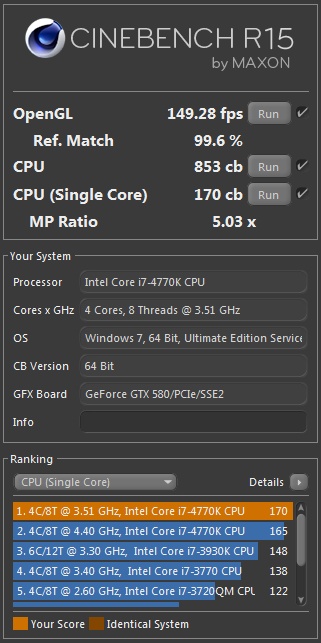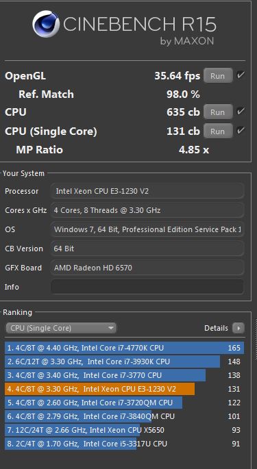 Ich komme mit meinen Core i5 2500 bisher immer nur auf 450-460cb, deiner scheint ja auch auf 3,3GHz getaktet zu sein oder?mjor23 schrieb:i5-2500k; 4/4; 3,3GHz; single: 146 ; multi: 559