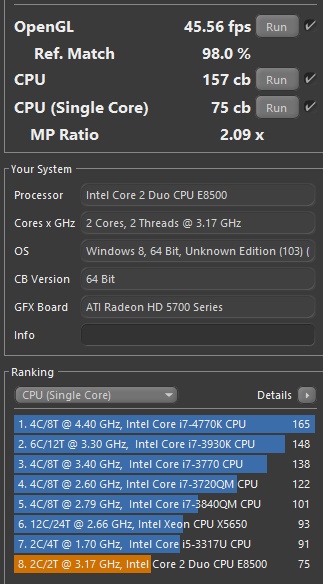 Wo hast du den Single Core Test in den Einstellungen gefunden, habe ihn bisher nicht gefunden habe mich aber auch schon gewundert da es bei CB 11.5 einen gab.