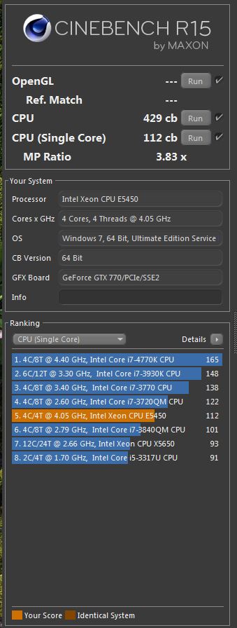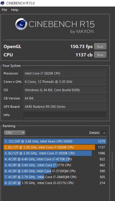 Takt der HT NB RAM etc war Standard, wobei ich stets profilaktisch ganz wenig overvoltet habe. Es waren auch alle 8 Kerne aktiviert. Ich schätze wenn ich auf 1 oder 2 Kerne herunterfahre, paar Taktungen erhöhe kann man da noch mehr rausquetschen, aber so demonstierte ich wenigstens realitätsnahe Zahlen.