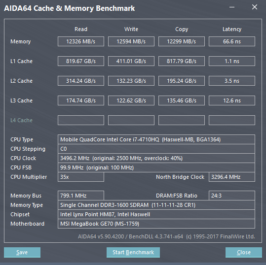 Der einzelne Riegel aus meinem Notebook muss sich wegen dem fehlenden dual channel fast mit der Hälfte der Leserate begnügen.