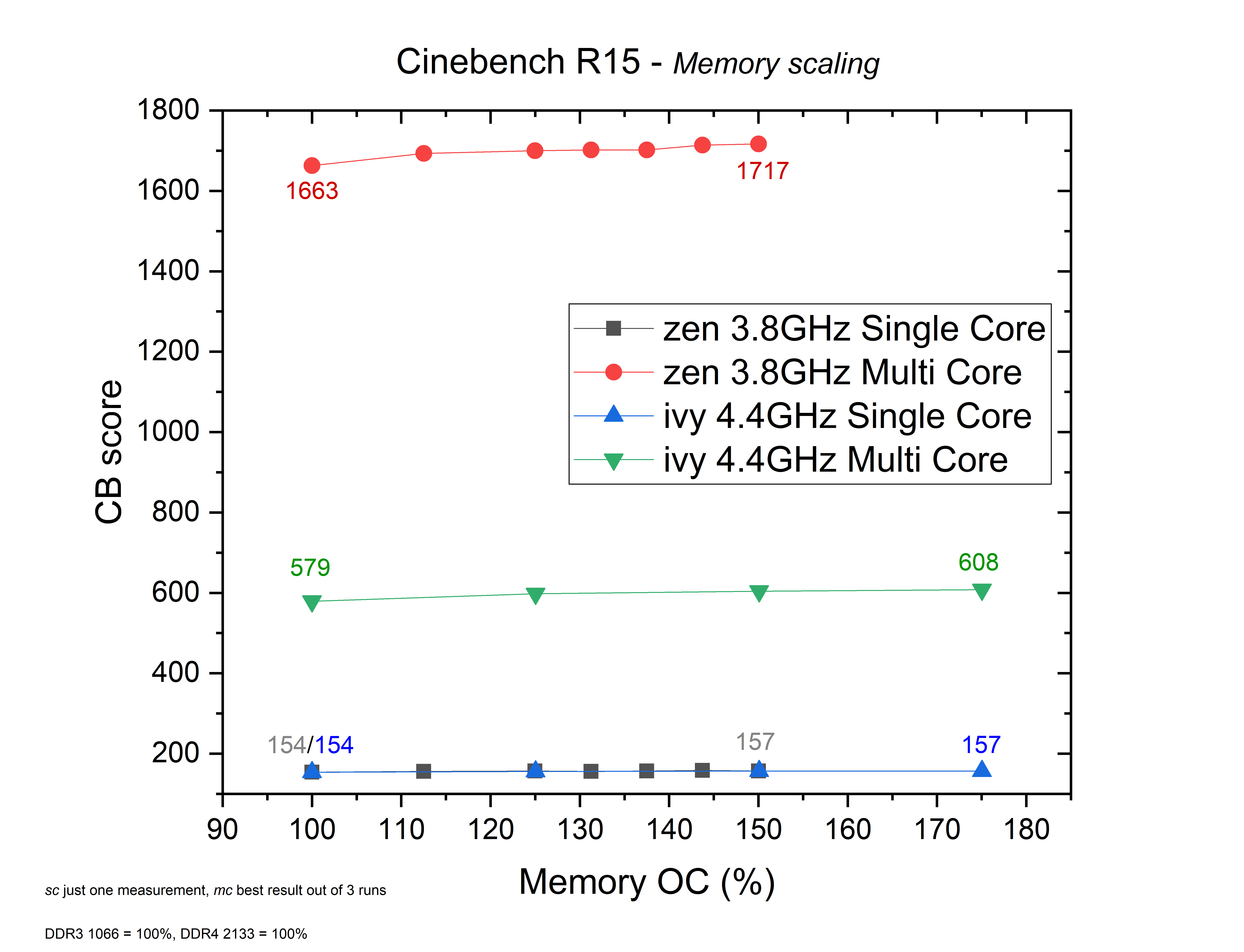 Die Ram-read-Werte zeigen eine schöne lineare Skalierung, und verdeutlichen auch die Wichtigkeit von Subtimings.